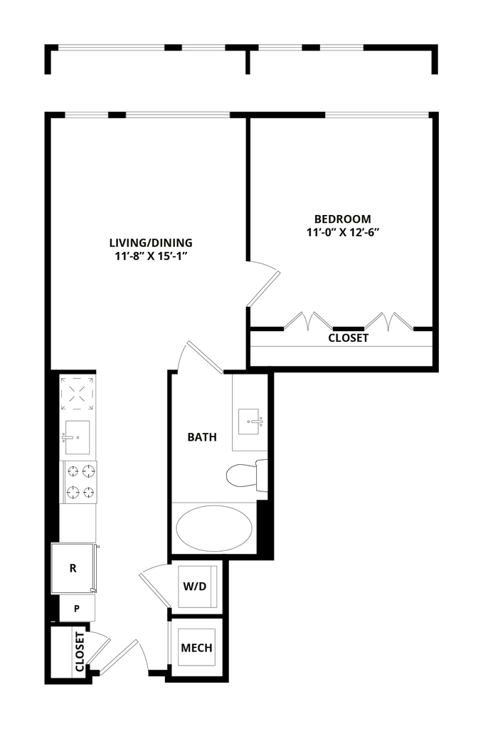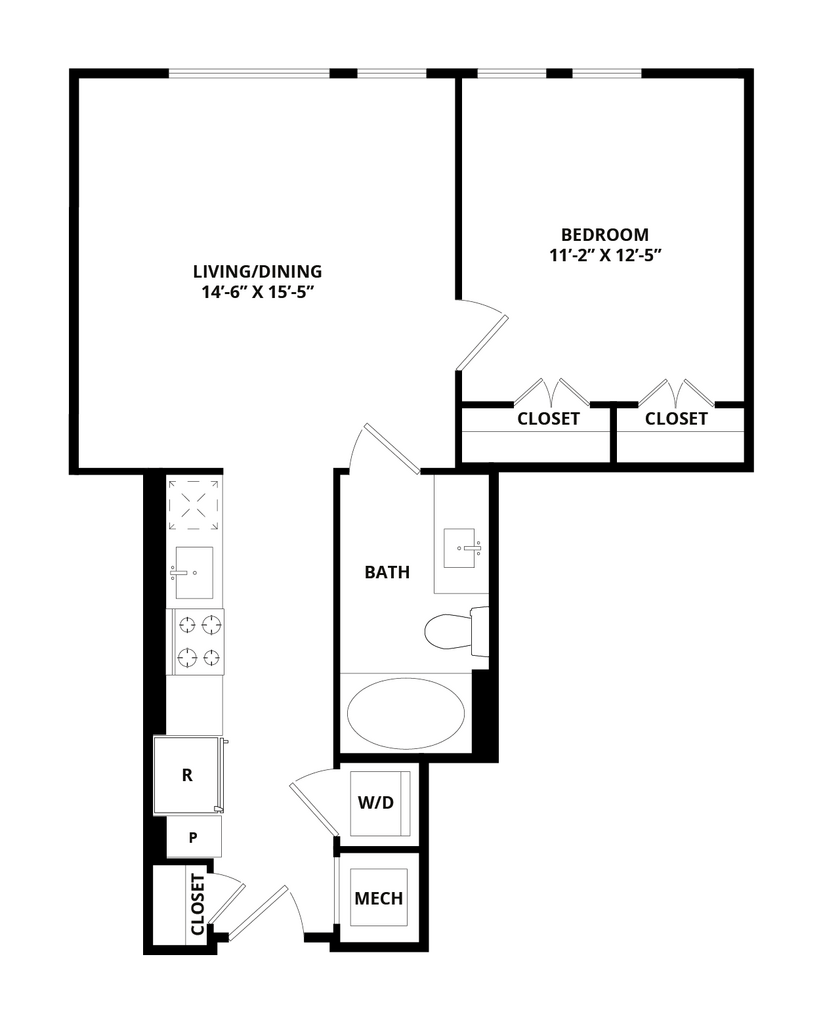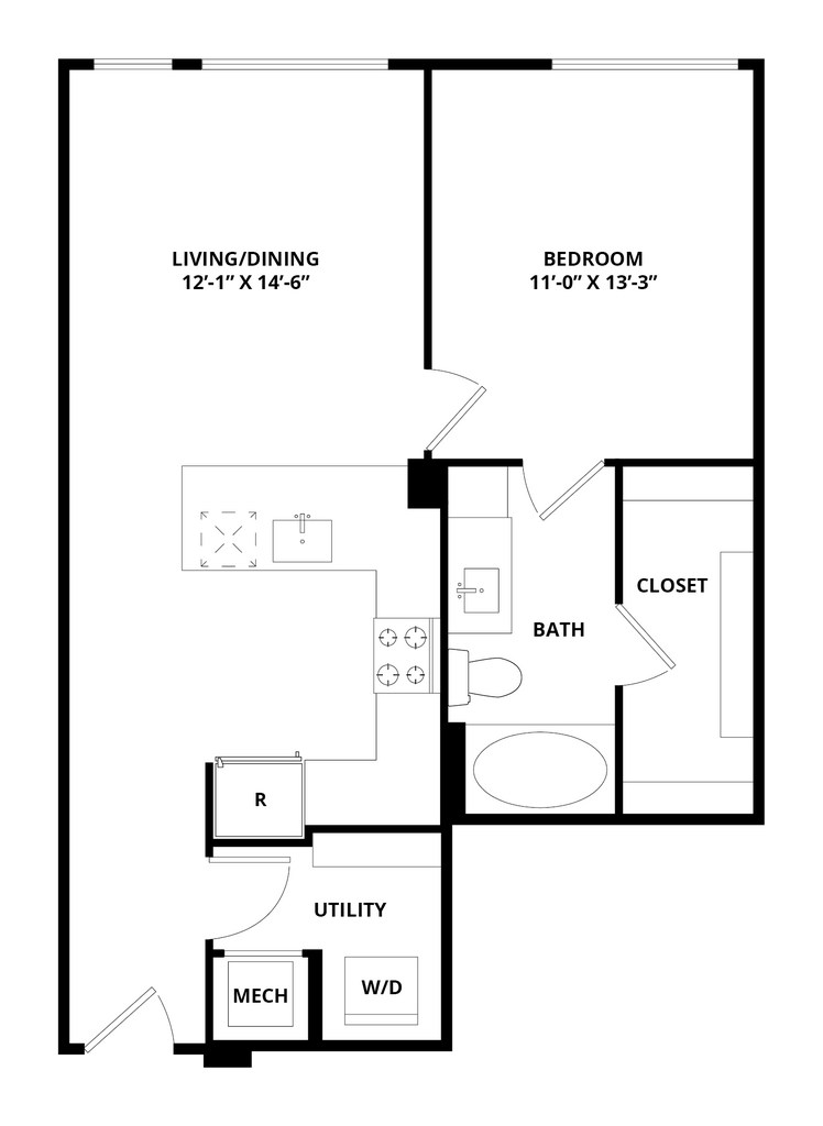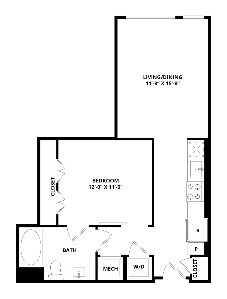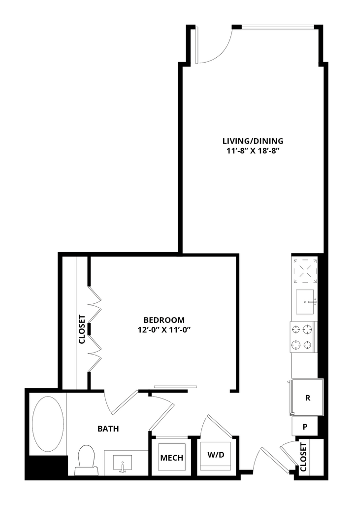 Studio-Fitzgerald - Floorplan 1 1 Bedroom