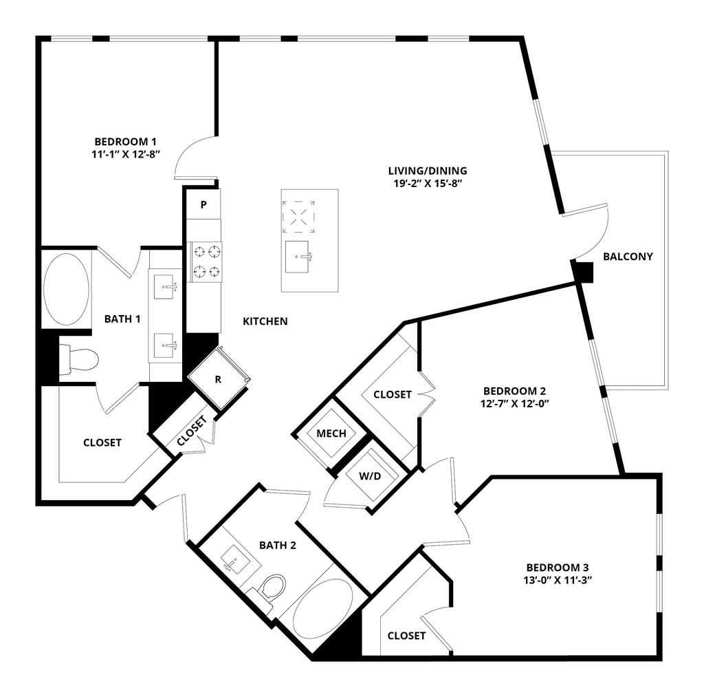 Apartment Model: 1 Bed/1 Bath-Dominion$2,1251 Bedroom, 1 Bath, 662 sq ftAvailable Now![]()