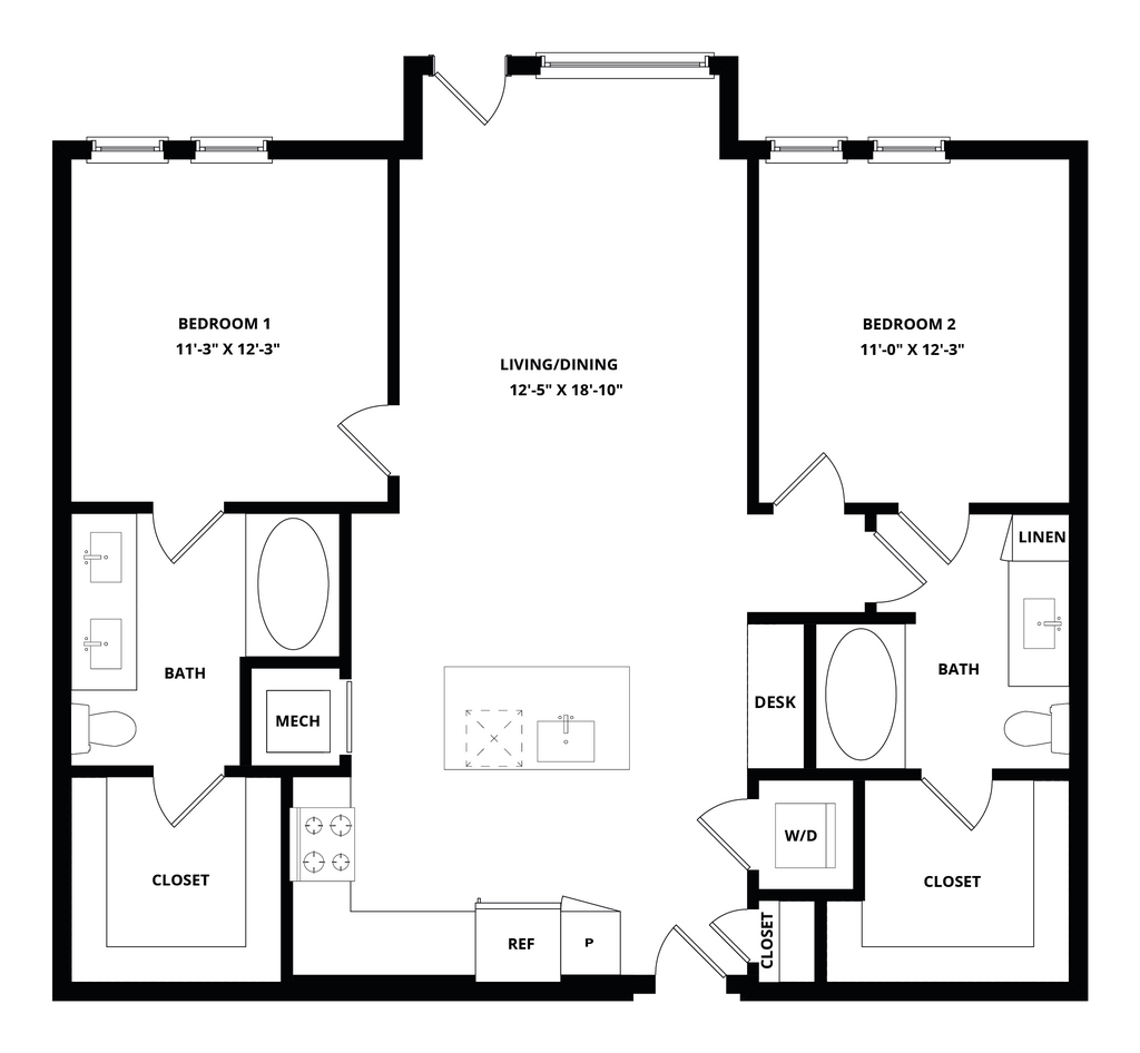 1 Bed, 1 Bath, 683 sq ftAvailable NowModel Gallery