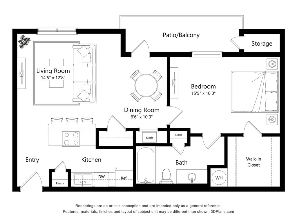 1 Bed, 1 Bath, 609 sq ftAvailable NowModel Gallery
