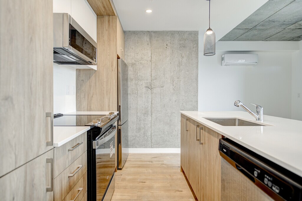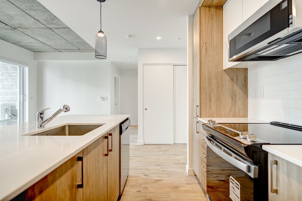 Espace Langelier – Montreal (Mercier–Hochelaga-Maisonneuve) Strategic location - Located in the heart of Mercier-Ouest, close to Rosemont, Anjou, and Hochelaga-Maisonneuve - A stone's throw from the Langelier metro station, with an adjacent BIXI station - Mature neighborhood with established businesses, schools, and services Project concept - New rental project offering condo living without the commitment to purchase - Positioned as one of the few new rental projects in the area - Immediate occupancy Unit types - Studios and 1- to 3-bedroom units Inclusions and features - 9-foot ceilings - Large windows - Quartz countertops - 5 appliances included, hot water included, air conditioning and high-speed Wi-Fi included - Storage space included Marketing positioning Modern rental project focused on simplicity, mobility, and comfort, ideal for young professionals, couples, or commuters looking for quick access to the subway while enjoying a complete and established neighborhood.