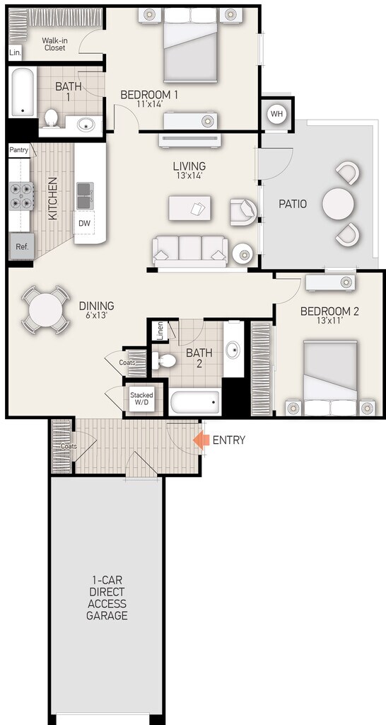 1 Bed, 1 Bath, 705 sq ftAvailable NowModel Gallery