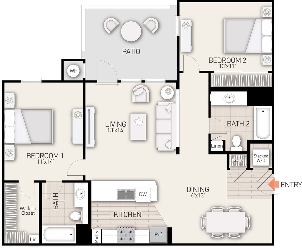 Apartment Model: Plan EFrom $2,6951 Bedroom, 1 Bath, 716 sq ftAvailable Now![]()