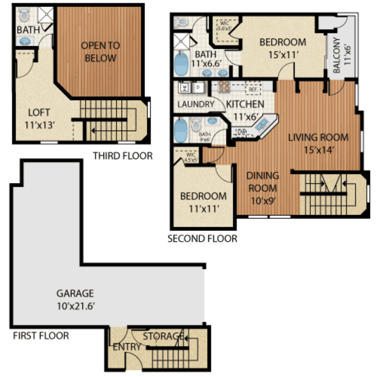 2 Beds, 2.5 Baths, 1508 sq ftLargest 2 BedroomThis is the largest 2 Bedroom at this PropertyModel Gallery