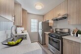 - Remodeled unit interior with wood-style flooring