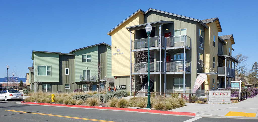 The brand new Esposti Park Apartments offers a little bit of the “ City” in the Country. These beautifully designed luxury apartments have a distinct light and airy urban feel. The clean fresh finishes are both modern and efficient. Esposti Park Apartments offers one, two and three bedroom units The complex features bike lockers , electric car charging stations, pre-wired satellite and Comcast cable and a lovely common barbeque /picnic area. The complex is located directly across from Esposti Park. There is easy access to highway 101 to take you to Santa Rosa as well as to the Windsor Town Green, both only minutes away. Units are available for occupancy now ! Don’t wait to call for an appointment to view your next home. Call Leia , Resident Manager, at Ham Delles Company, Inc. (707) 687-5642. Please note we do not permit pets or accept housing vouchers . We are a no- smoking complex. To view floor plans visit us at: Espostiparkapartments.com