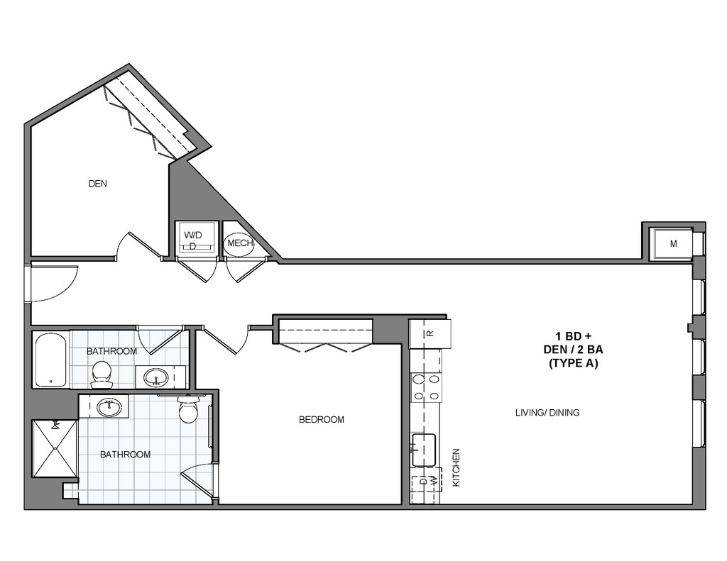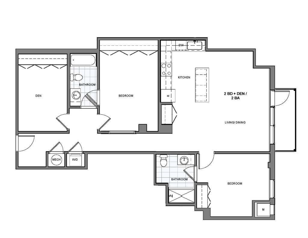 One Bedroom 2 Baths and Den - Floorplan 1 Apartment Unit: 131Apartment Model: One Bedroom 2 Baths and Den$2,3761 Bedroom, 2 Bath, 1057 sq ftAvailable NowOne Bedroom with Den