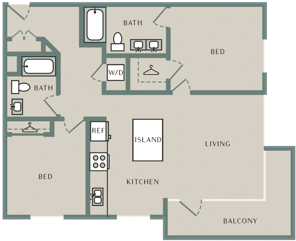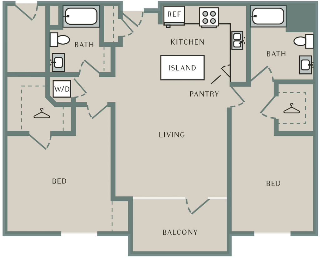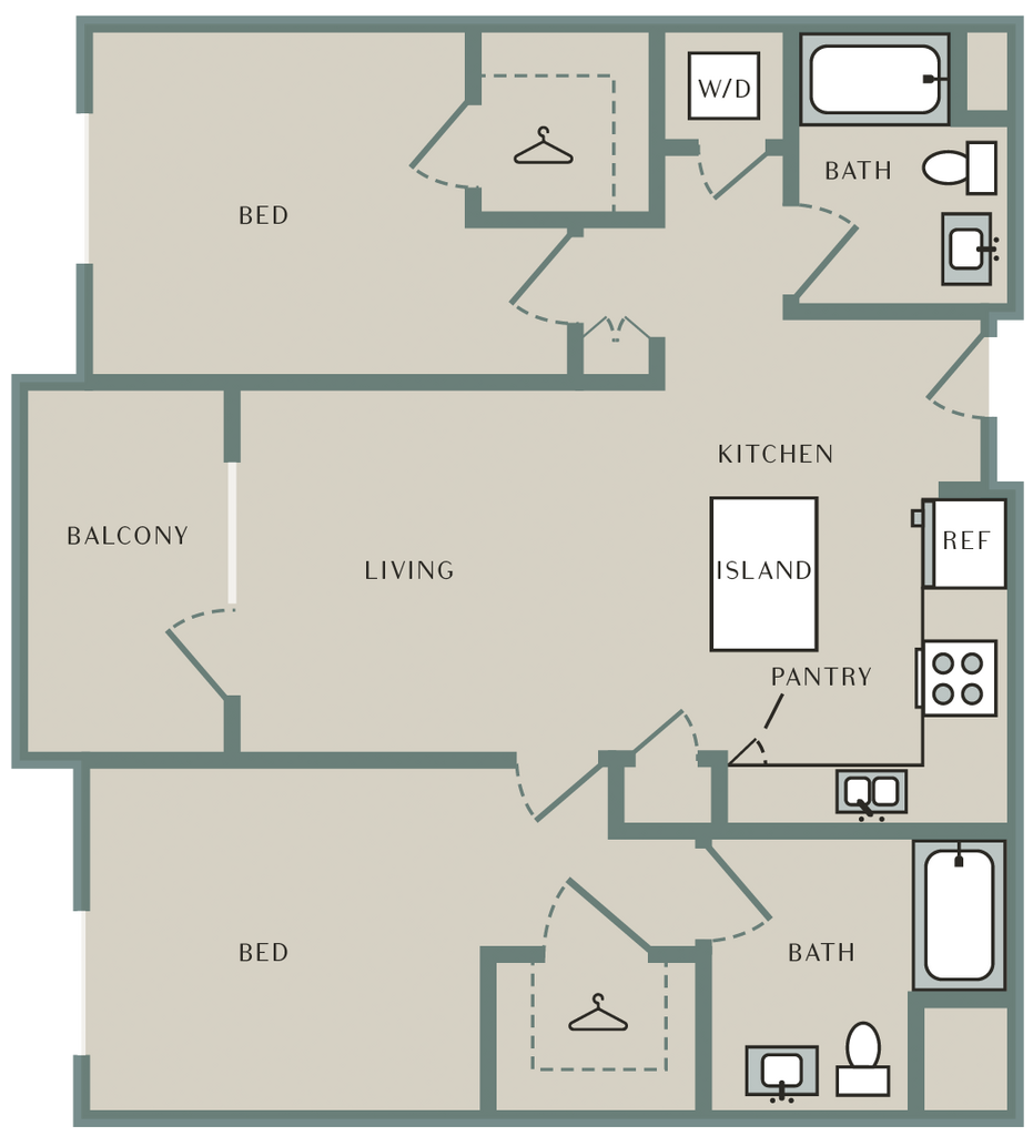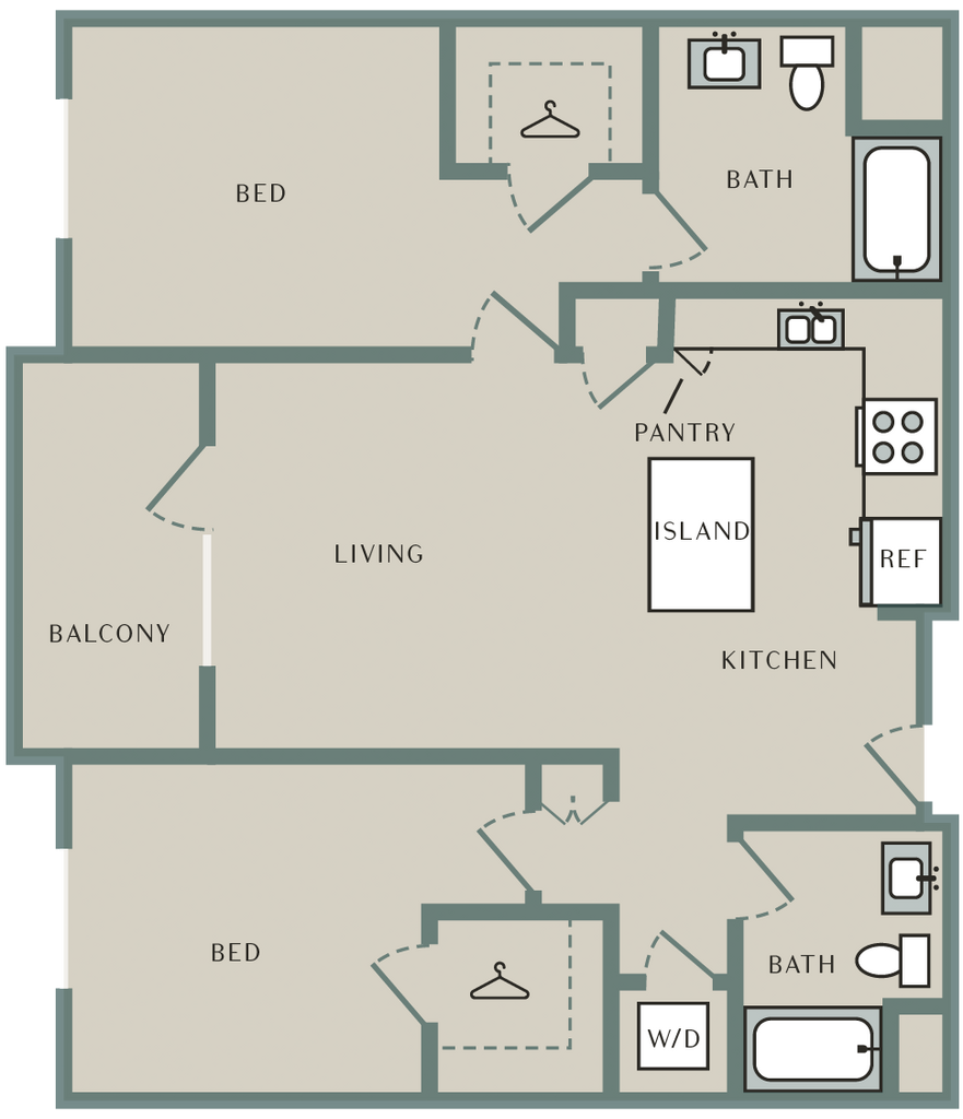 Sage - Floorplan 1 Apartment Unit: 726Apartment Model: Sage2 Bedroom, 2 Bath, 1030 sq ftAvailable NowWillow