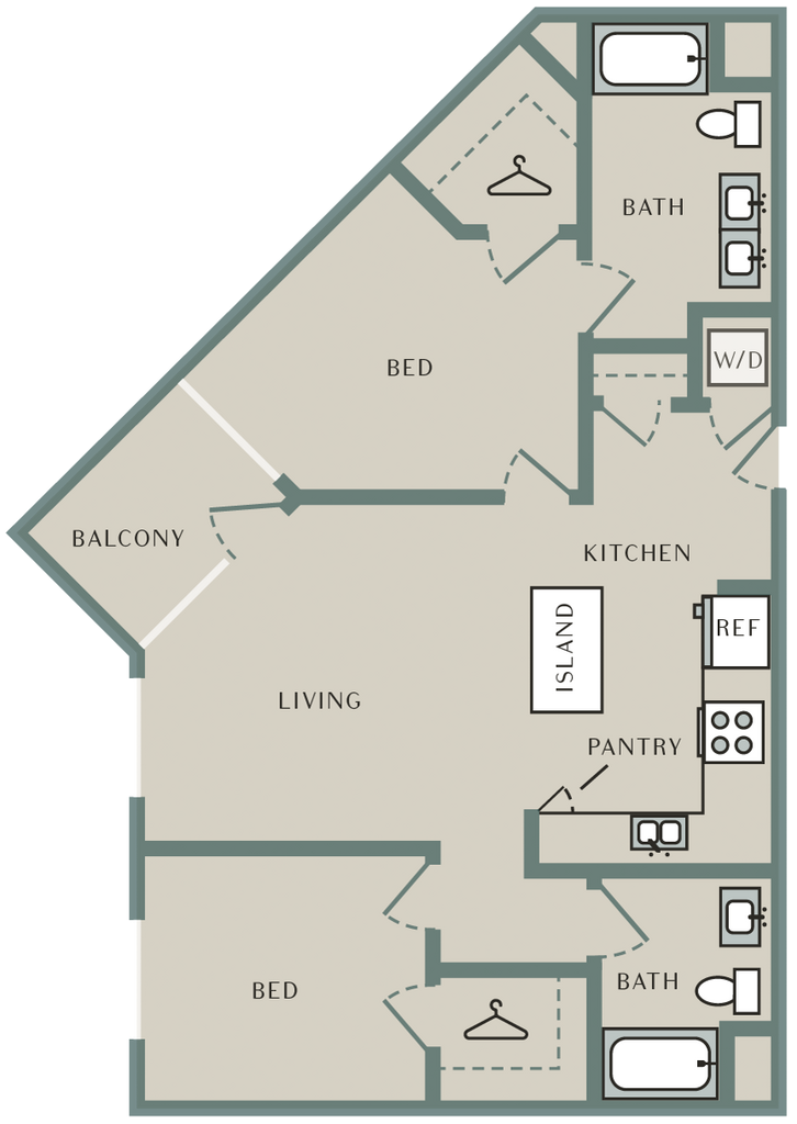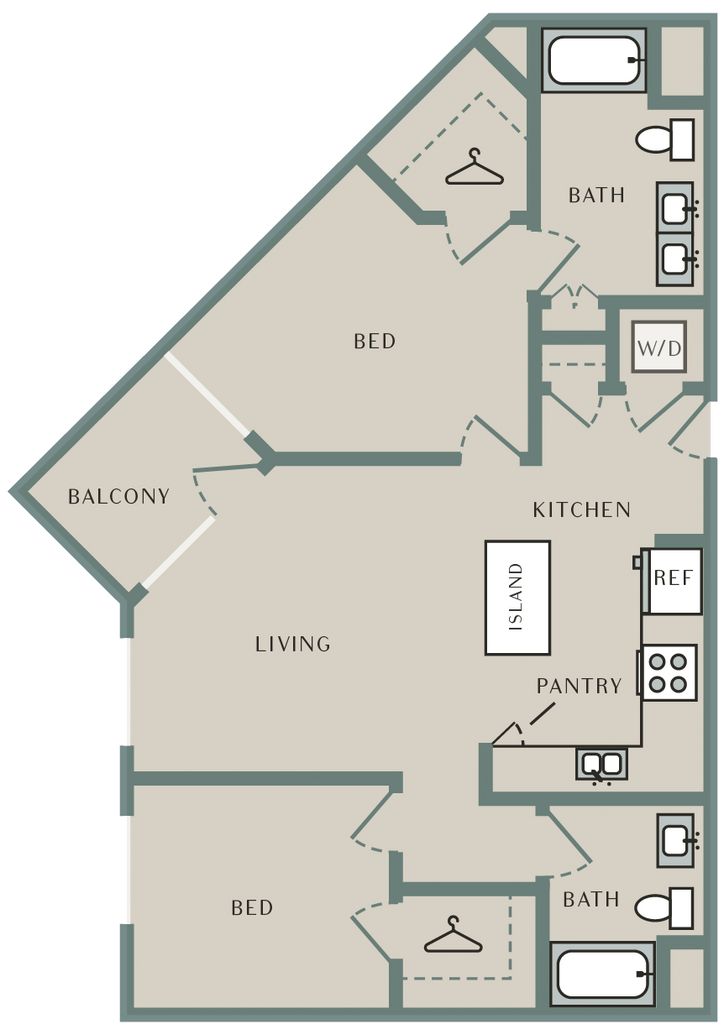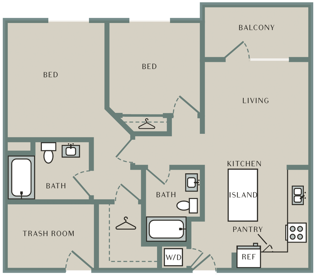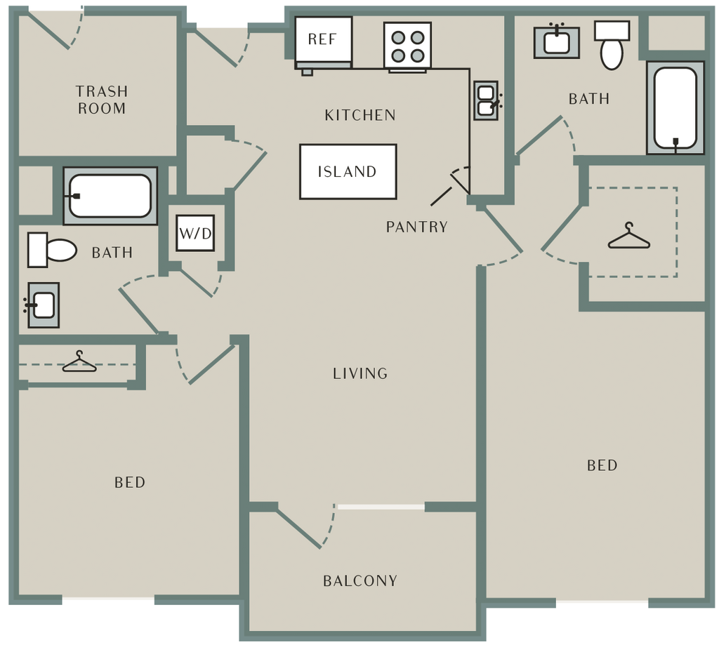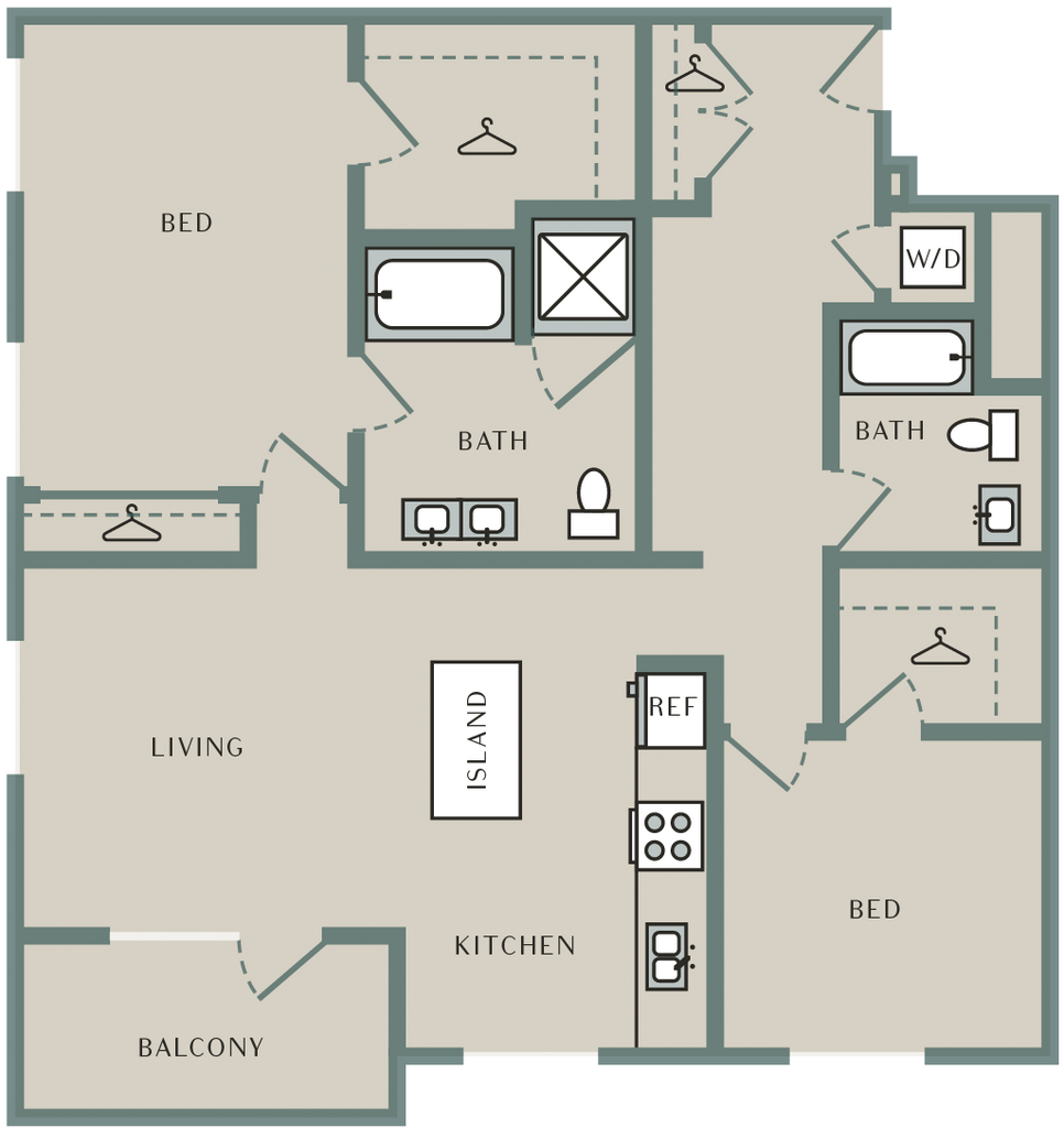 Sage - Floorplan 1 Apartment Unit: 726Apartment Model: Sage2 Bedroom, 2 Bath, 1030 sq ftAvailable NowWillow
