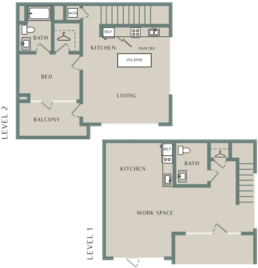 Live Work 6 - Floorplan 1 Apartment Unit: LW7Apartment Model: Live Work 61 Bedroom, 1 Bath, 1454 sq ftAvailable NowLive Work 2