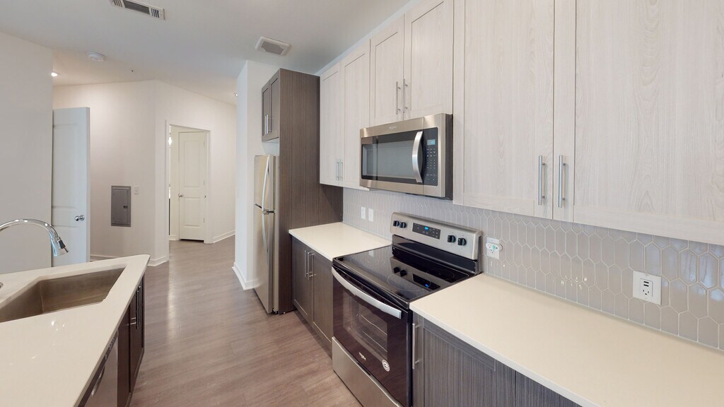 Essex Luxe Apartments offers upscale one-, two- and three-bedroom apartment homes for rent in an ideal Orlando location close to both work and play. Enjoy resort-inspired living with modern amenities, including the fully-equipped fitness center and spin studio, beautiful and functional resident clubhouse, and heated saltwater swimming pool. Each well-appointed apartment home offers quartz countertops, stainless steel appliances, shaker-style cabinetry, a kitchen island, and wood plank flooring. Plus, finer details include undermount sinks, gooseneck faucets, and a keyless entry. Make the most of easy access to choice employers, premiere entertainment options, and local shops and restaurants via I-4 or the 528 Toll.