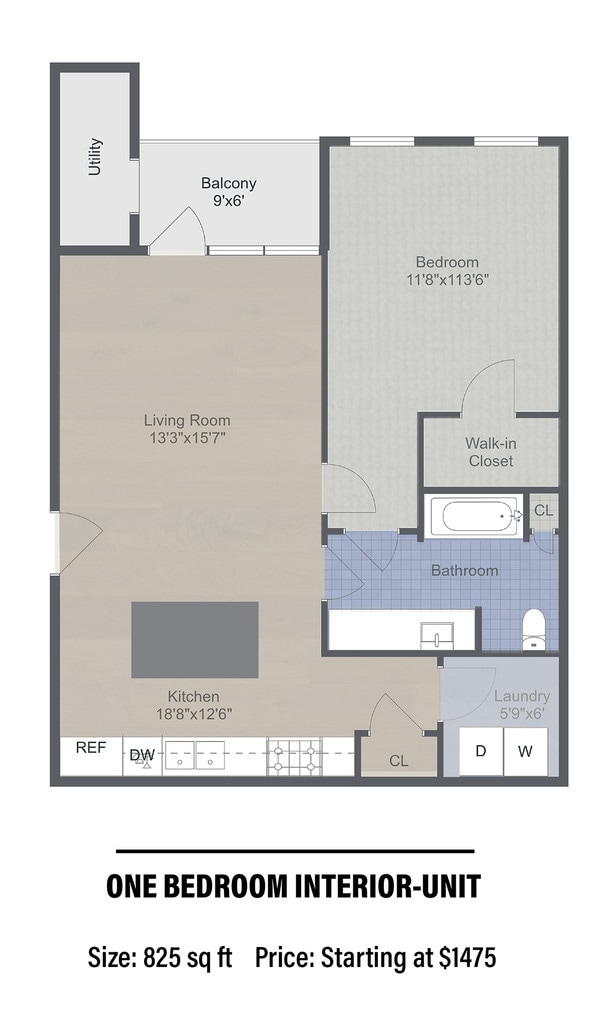 1 Bed, 1 Bath, 825-845 sq ftAvailability Details