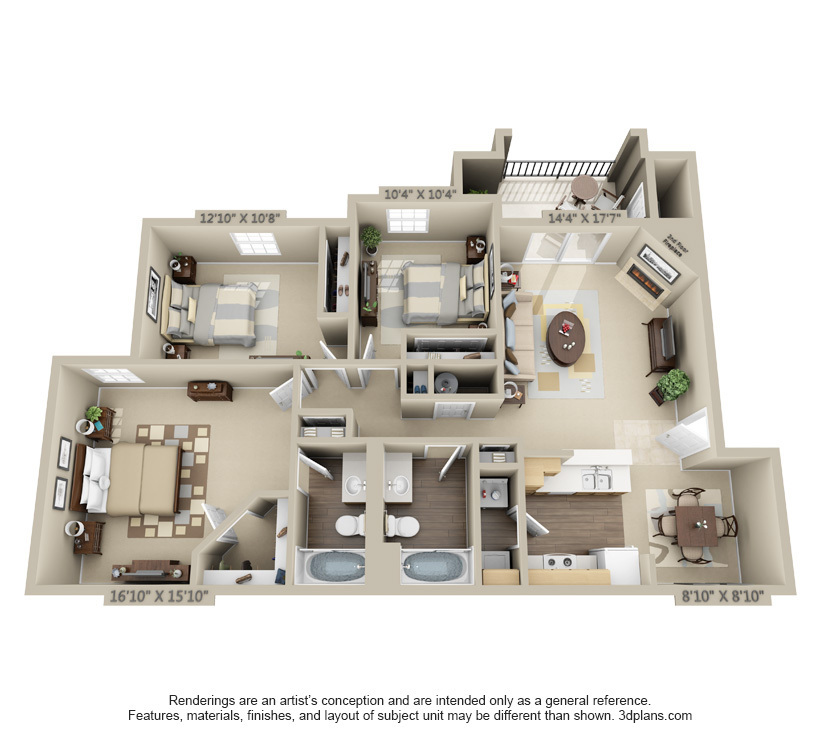 3 Beds, 2 Baths, 1320 sq ftModel Gallery