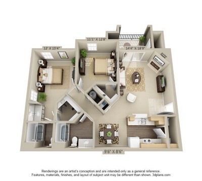 Apartment Model: The River CrossingFrom $1,4092 Bedroom, 2 Bath, 960 sq ftAvailable NowFloor plans are artist's rendering. All dimensions are approximate. Actual product and specifications may vary in dimension or detail. Not all features are available in every rental home. Prices and availability are subject to change. Base rent is based on monthly frequency. Additional fees may apply, such as but not limited to package delivery, trash, water, amenities, etc. Deposits vary. Please see a representative for details.