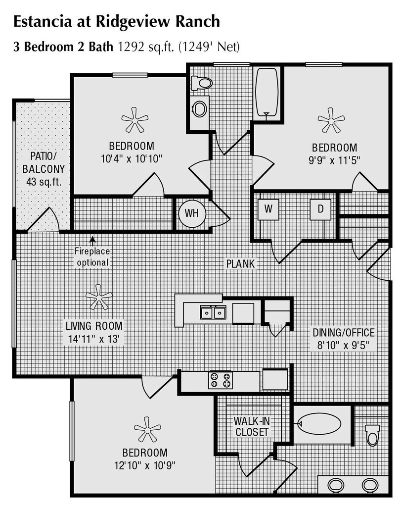 Welcome to Estancia at Ridgeview Ranch. Located off of Highway 121 at Independence Parkway w/ beautiful golf course views, Estancia interiors include plank flooring, granite countertops, stainless steel appliances, ceramic surface cooktops, built-in bookcases, tray ceilings, crown molding, lighted ceiling fans, decorative fireplaces, and washer/dryer. Spectacular amenities include resort style pool and fountains, pavilion w/ picnic tables and BBQ, indoor basketball and racquetball, fitness center, sand volleyball, playground, backyards, game room, and business center. Covered parking and direct access garages are available, as is WiFi in the clubhouse, business center and poolside. Pets are welcome by breed, not weight. Visit our dog parks! For the past 45 years, Management Support has provided an outstanding living experience including our dedication to the highest level of maintenance and service to our residents. Find your new home today!