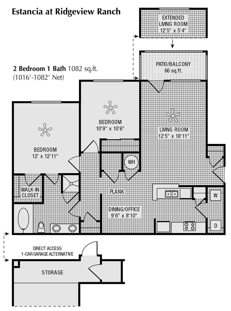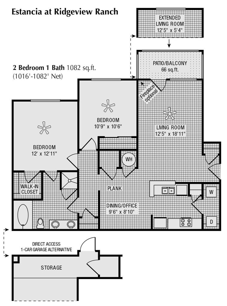 1 Bed 1 Bath 678 SqFt (678 Net) - Floorplan 1 ![]()