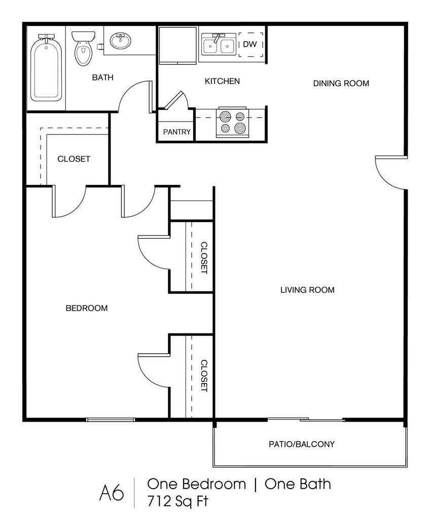 Apartment Model: A61 Bedroom, 1 Bath, 712 sq ftUnavailableA6 - Floorplan 1 2 Bedrooms