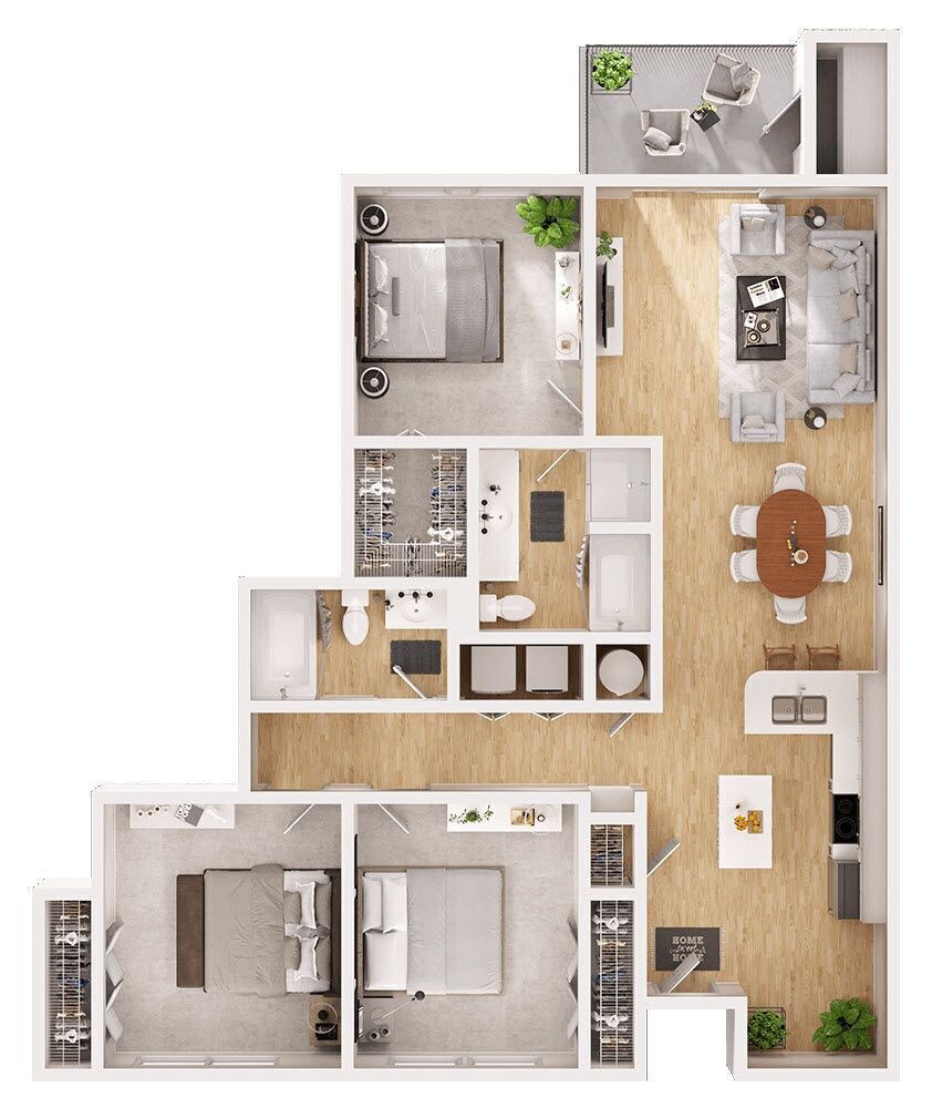 1 Bed, 1 Bath, 1201 sq ftAvailable NowLargest 1 BedroomThis is the largest 1 Bedroom at this PropertyModel Gallery