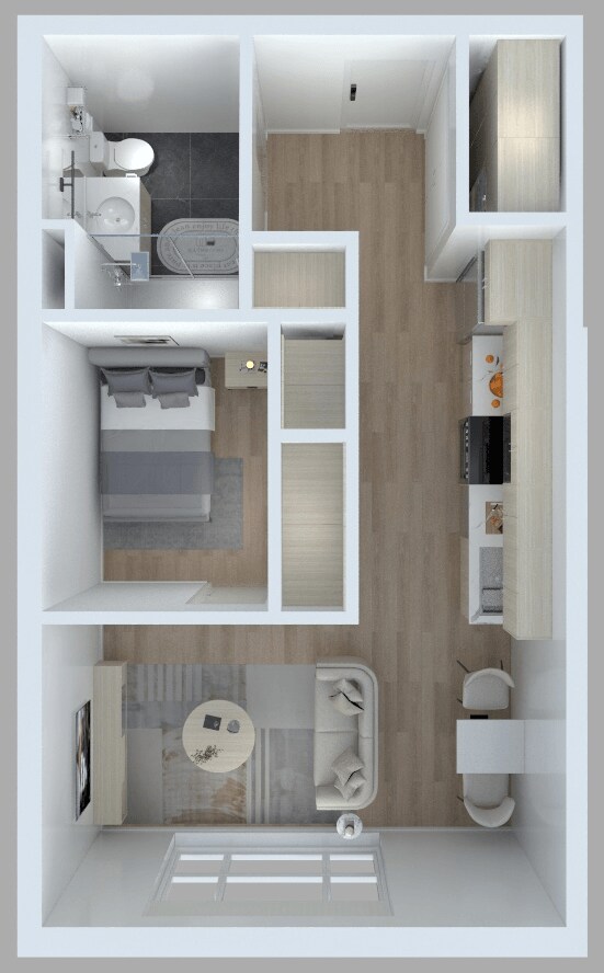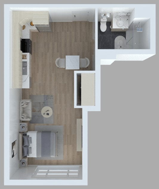 S1 - Floorplan Apartment Unit: 301Apartment Model: S1$2,290Studio, 1 Bath, 469 sq ftAvailable July 1, 2026Apartment Unit: 501Apartment Model: S1$2,290Studio, 1 Bath, 469 sq ftAvailable July 1, 20261 Bedroom