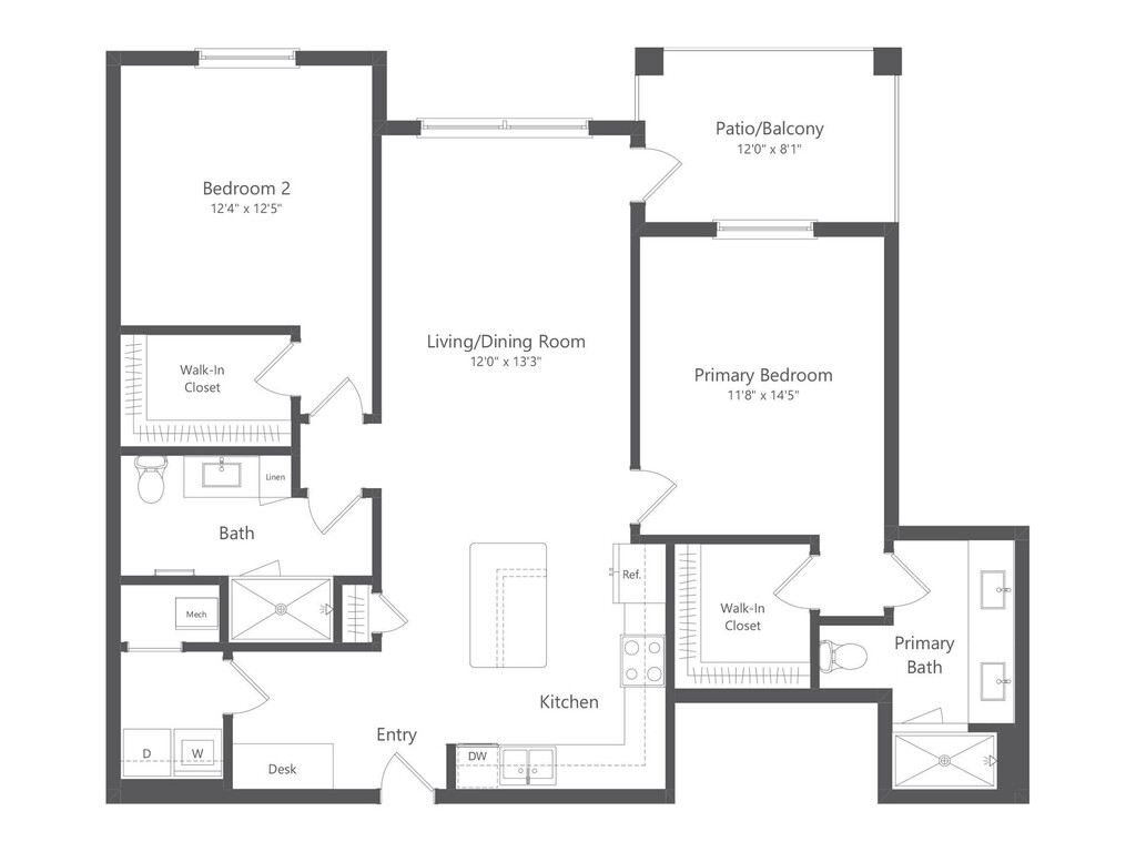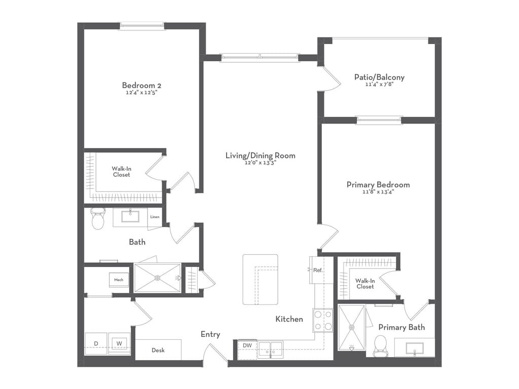 Apartment Model: B2From $1,9662 Bedroom, 2 Bath, 1126 sq ftAvailable NowFloor plans are artist's rendering. All dimensions are approximate. Actual product and specifications may vary in dimension or detail. Not all features are available in every rental home. Prices and availability are subject to change. Base rent is based on monthly frequency. Additional fees may apply, such as but not limited to package delivery, trash, water, amenities, etc. Deposits vary. Please see a representative for details.