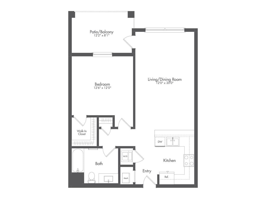 1 Bed, 1 Bath, 705 sq ftAvailable NowModel Gallery