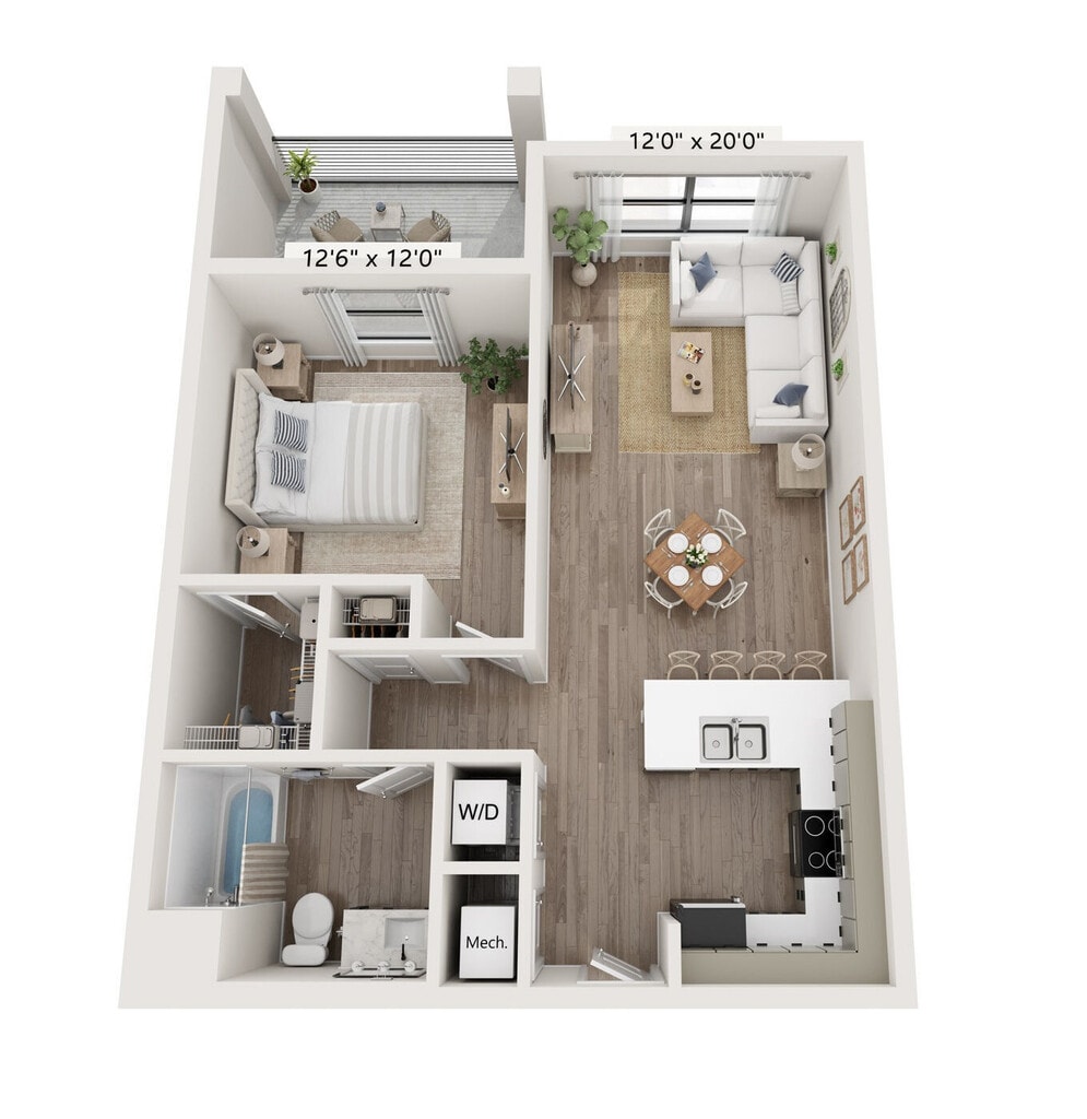 Apartment Model: A1From $1,5161 Bedroom, 1 Bath, 705 sq ftAvailable NowFloor plans are artist's rendering. All dimensions are approximate. Actual product and specifications may vary in dimension or detail. Not all features are available in every rental home. Prices and availability are subject to change. Base rent is based on monthly frequency. Additional fees may apply, such as but not limited to package delivery, trash, water, amenities, etc. Deposits vary. Please see a representative for details.