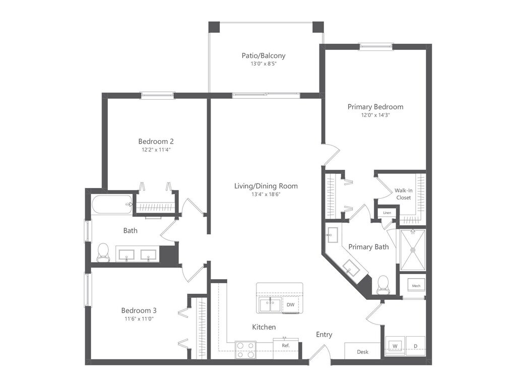 Apartment Model: B1From $1,8402 Bedroom, 2 Bath, 1086 sq ftAvailable NowFloor plans are artist's rendering. All dimensions are approximate. Actual product and specifications may vary in dimension or detail. Not all features are available in every rental home. Prices and availability are subject to change. Base rent is based on monthly frequency. Additional fees may apply, such as but not limited to package delivery, trash, water, amenities, etc. Deposits vary. Please see a representative for details.