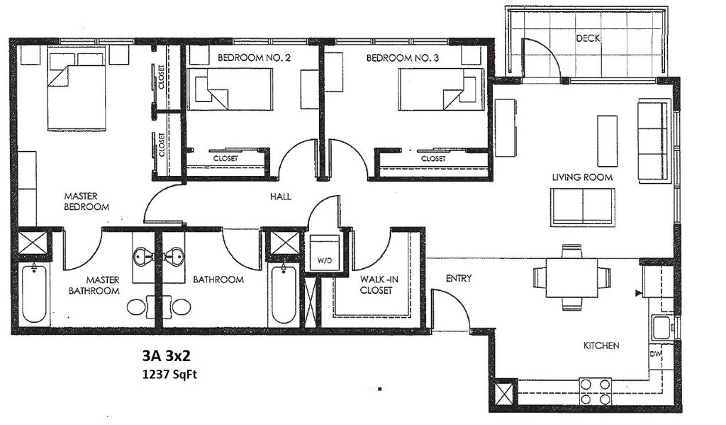2 Bed / 1 Bath - Floorplan 12 3 Bedrooms