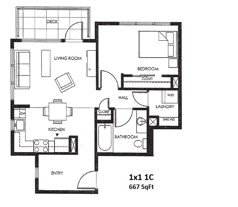 1 Bed, 1 Bath, 544-674 sq ftModel Gallery
