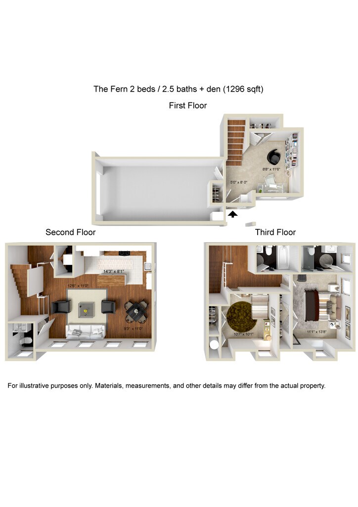 2 Beds, 2.5 Baths, 1296 sq ftAvailable NowLargest 2 BedroomThis is the largest 2 Bedroom at this PropertyAvailability Details