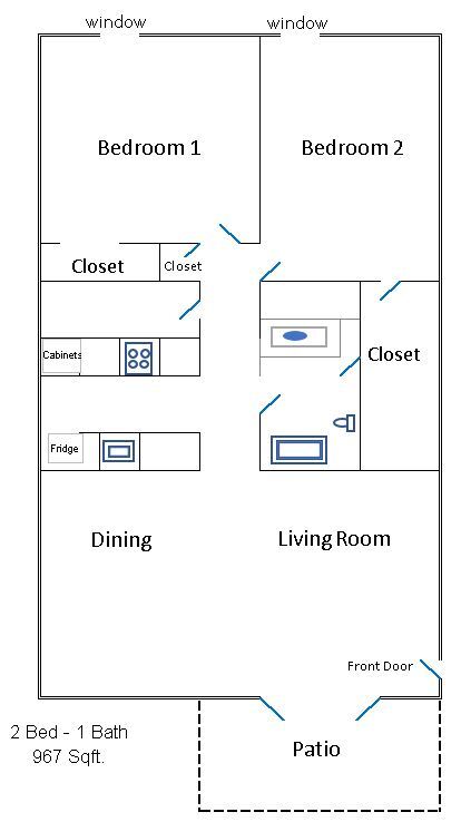 2 Beds, 1 Bath, 1001 sq ftAvailability Details