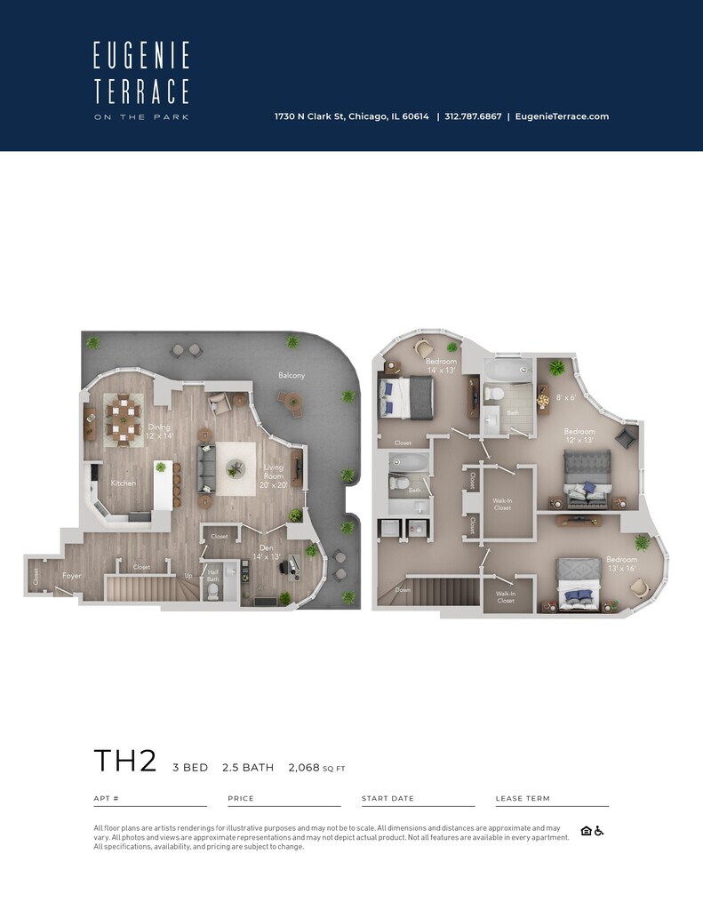 Eugenie Terrace on the Park offers Studio to 3 Bedroom apartments starting from $2,449 and having 487–2,138 sq ft. Here is the current pricing and availability: