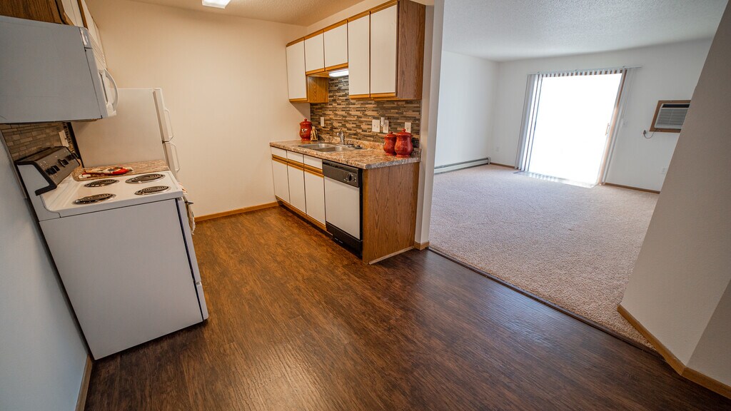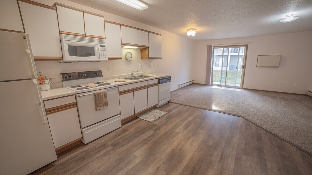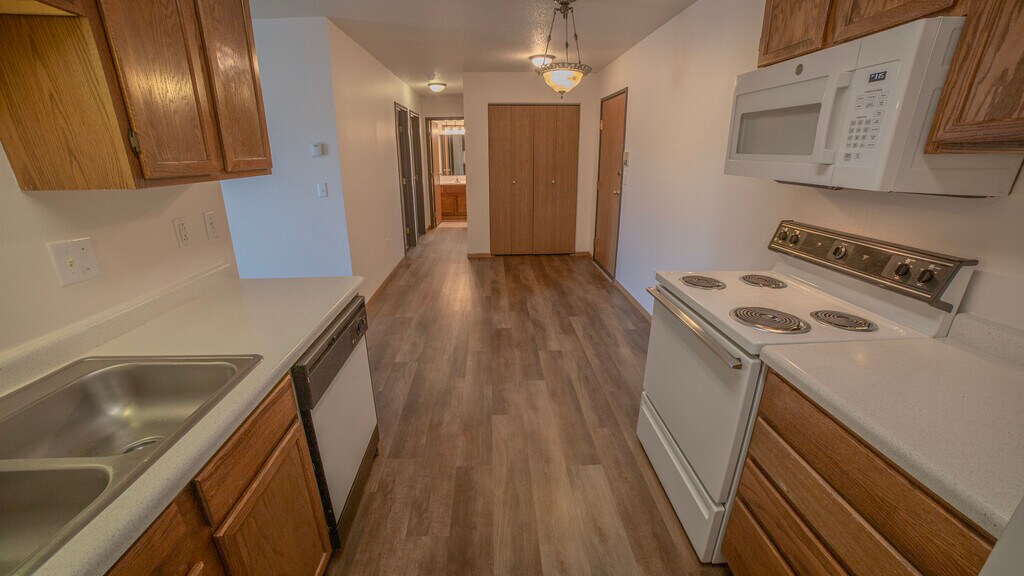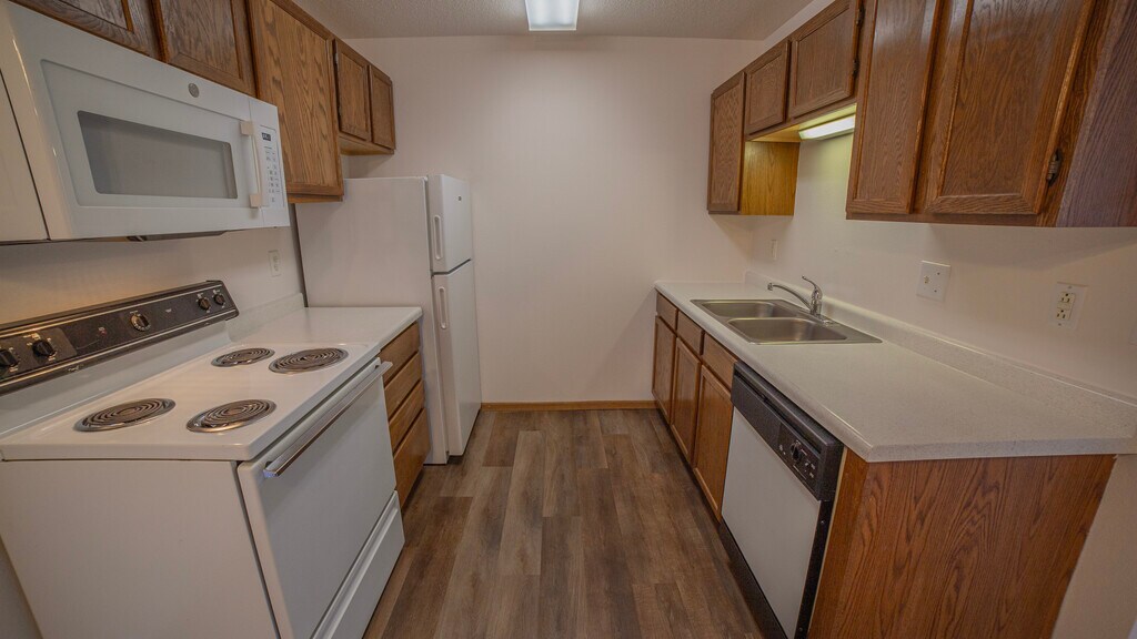 Enjoy our sprawling lawn and beautiful courtyard, take a walk or bike ride, or enjoy the downtown night life. This well designed site captures the essence of hassle free living while enjoying the well-groomed and spacious lawns and picnic areas where summer comes alive. • Double Garage Included • Washer & Dryer Included • Controlled Access • Playground • Quick and easy access to downtown Fargo • Just off the Interstate • Quick trip to NDSU, MSUM and Concordia colleges • New Cathedral Designer Oak Kitchen Cabinets • Granite Composite Counter Tops • Washer/Dryer Hookups • Built In Microwaves • Dishwasher • 6 Panel Doors • Mirrored Closet Doors • Wood Floors, Kitchen & Dining • Walk-In Closets • Ceramic Tiled Bathroom Floors • Balcony, Deck, Patio