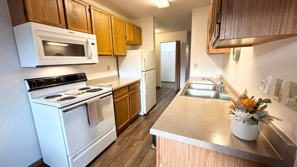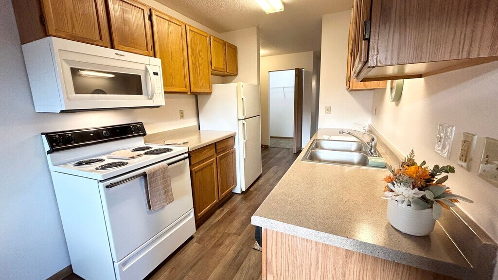 Great Location! • Dbl Garage Included • Washer & Dryer Included • Controlled Access • Playground • Quick and easy access to downtown Fargo • Just off the Interstate • Quick trip to NDSU, MSUM and Concordia colleges • New Cathedral Designer Oak Kitchen Cabinets • Granite Com[osite Counter Tops • Washer/Dryer Hookups • Built In Microwaves • Dishwasher • 6 Panel Doors • Mirrored Closet Doors • Wood Floors, Kitchen & Dining • Walk-In Closets • Ceramic Tiled Bathroom Floors • Balcony, Deck, Patio