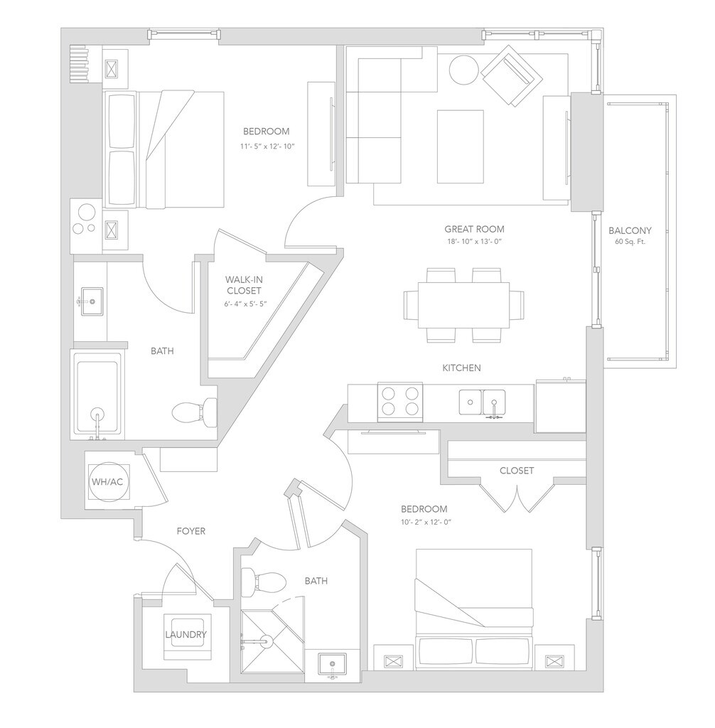 1 Bed, 1 Bath, 707 sq ftModel Gallery