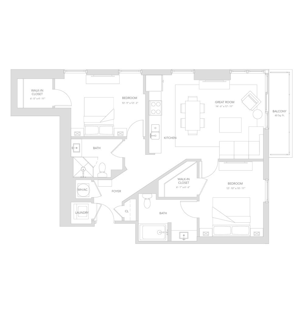 1 Bed, 1 Bath, 695 sq ftModel Gallery