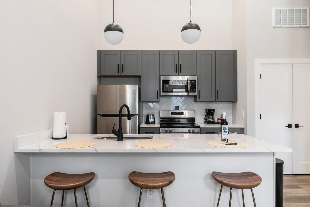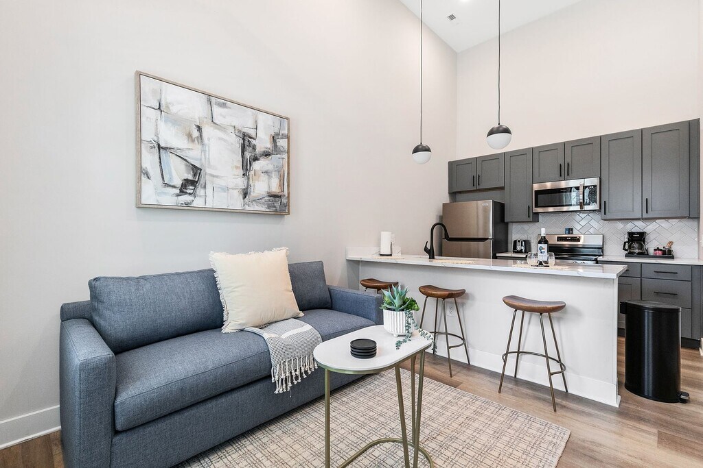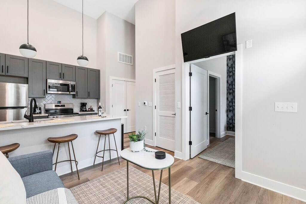 This fully furnished 1Bd|1Ba apartment (#103) featuring an efficient open floor plan and modern finishes throughout. With approximately 500 square feet of thoughtfully designed living space, this apartment has everything you need for comfort, convenience, and style. Enjoy a queen-size Leesa mattress in the bedroom and a queen-size pull-out sleeper sofa in the living room — perfect for guests. The kitchen is fully equipped with full-size appliances, cookware, dishes, and a kitchen island with seating for three. Relax on your private 1st floor patio, stream your favorite shows on the either of your HD Smart TVs, or enjoy a fresh cup from the fully stocked coffee bar. Other highlights include: In-unit full-size washer & dryer (laundry detergent included) Free high-speed Wi-Fi All utilities includes (your rent covers all monthly bills) Central heat and air conditioning - thermostat controlled Tiled bathroom with rainfall showerhead and luxury bath linens Hair dryer, vanity mirror, and basic toiletries provided Iron and ironing board Room-darkening curtains and white noise machine for restful sleep Pack ’n Play crib available upon request Off-street compact parking space included; free street parking also available This turnkey apartment offers the perfect blend of comfort and convenience — ideal for short-term stays, business travelers, or anyone seeking a move-in-ready home. Flexible Lease Term w/ 30-days minimum (Available anytime December 1st, 2025 to May 31st 2026) 1. Apply Online 2. Sign lease + pay deposit 3. Move-in & enjoy!