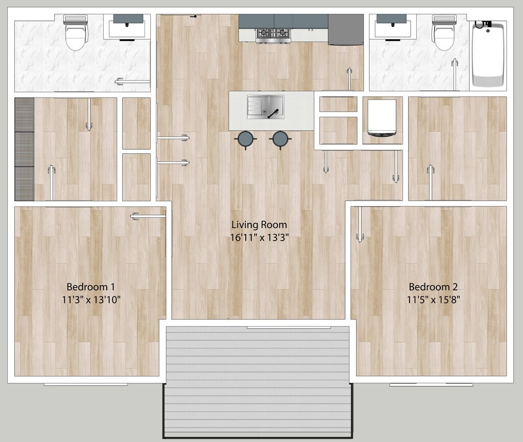 2BR/2.0BA - Floorplan 5 Apartment Unit: 306Apartment Model: 2BR/2.0BA2 Bedroom, 2 Bath, 897 sq ftAvailable Now![]()