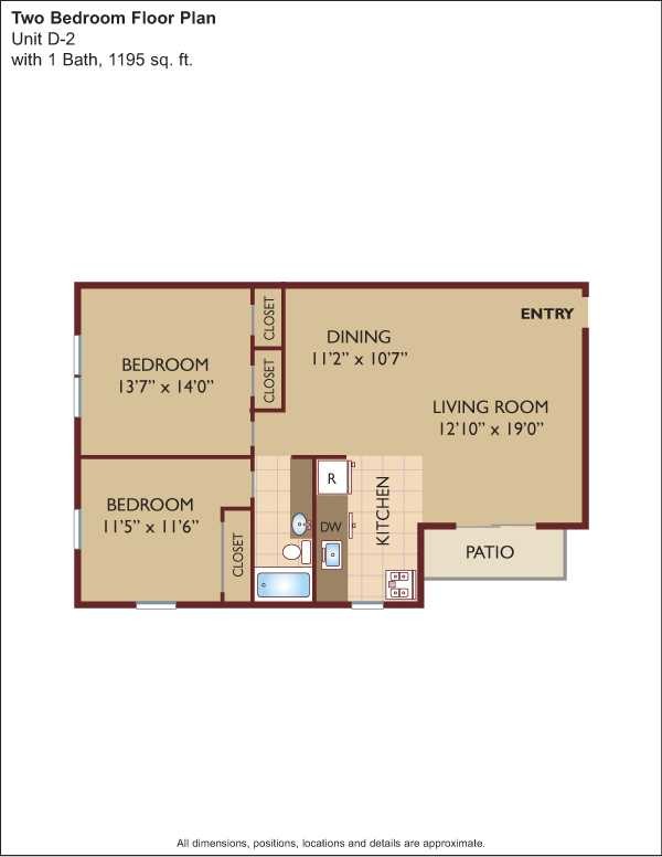 $2.42/sq.ft. - D-2 - Floorplan 1 Apartment Unit: APT5Apartment Model: $2.42/sq.ft. - D-2$2,9402 Bedroom, 1 Bath, 1195 sq ftAvailable Now$2.31/sq.ft. - C-2