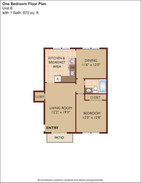 Apartment Model: $2.31/sq.ft. - BFrom $2,0101 Bedroom, 1 Bath, 870 sq ftAvailable Now![]()