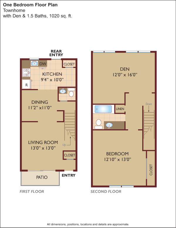 $1.79/sq.ft. - One Bedroom Den TownHome - Floorplan 1 2 Bedrooms
