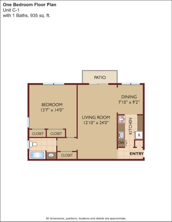 Apartment Model: $2.16/sq.ft. - C-1$2,0701 Bedroom, 1 Bath, 935 sq ftAvailable Now![]()