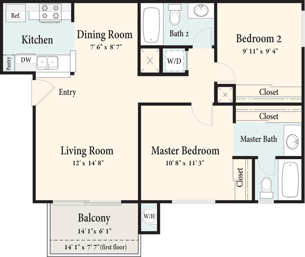 Apartment Model: Redwood - 2/2$1,9992 Bedroom, 2 Bath, 811 sq ftAvailable Now![]()