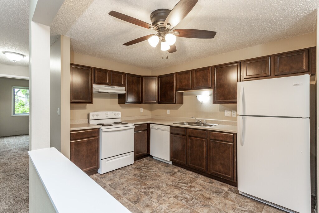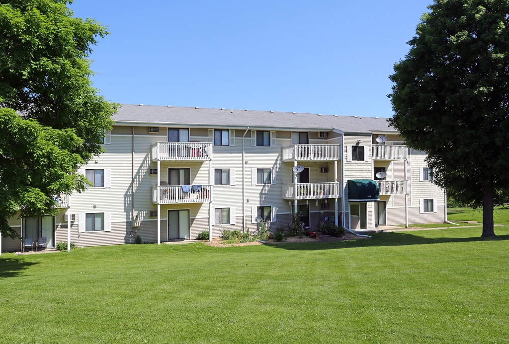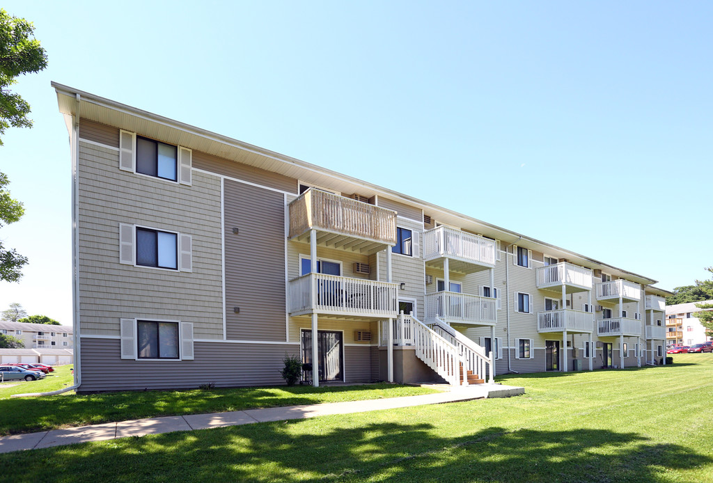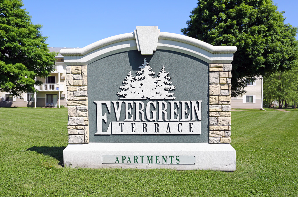 Evergreen Terrace Apartments is a family owned and operated property. Convenient Location – Park-like Grounds – Friendly Staff – Modern Updates. Evergreen Terrace is conveniently located in South Des Moines near shopping, restaurants, parks, and schools on Evergreen Avenue with easy access to SE 14TH Street, Highway 69, I-80, I-235, and downtown Des Moines. Our quiet park-like setting offers large open lawn areas, beautiful trees, and a sparkling swimming pool and is next to Evergreen Park, featuring a fantastic playground plus picnic areas. Generous parking available including optional garage. A Laundry Care Center with new Speed Queen laundry machines is conveniently in each hallway. Apartments have spacious open concept floor-plans with large windows for plenty of natural light plus all major kitchen appliances, generous cabinet & counter space, newer vinyl flooring & premium carpeting, ceiling fans, spacious closets, and large balcony or patio. Select apartments feature completely remodeled NEW kitchen and bath. Easter Lake Park is a three minute car drive away with swimming, fishing, and much more. Call or stop by today! *certain restrictions apply*
