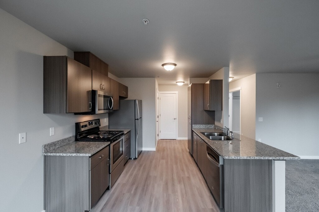 Welcome to Evergreen Valley Apartments! These apartment homes feature high quality finishes like granite counter tops, wood cabinets, stainless steel kitchen appliances, air conditioning, in-unit washer and dryer, private balcony, and so much more to make you feel right at home. These beautiful apartment homes are located near restaurants, public schools, Chemeketa Community College, Linfield College, Evergreen Nature Trail and Down Town McMinnville. The community is pet friendly with a dog park (restrictions apply, call for details). No Smoking. We are open Monday through Friday from 9:00 am - 5:00 pm. Water/sewer/garbage/common area electricity charge is $75 per month. $50 additional monthly rent for pet and $500 additional security deposit per pet. *security deposit listed is the minimum, actual security deposit based on application results. **One year lease required for advertised rent, month to month rental is available at $100 more per month.