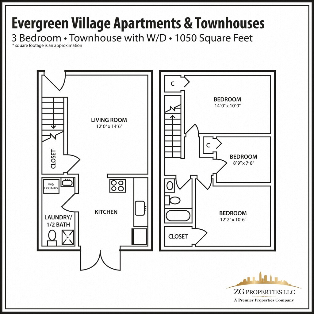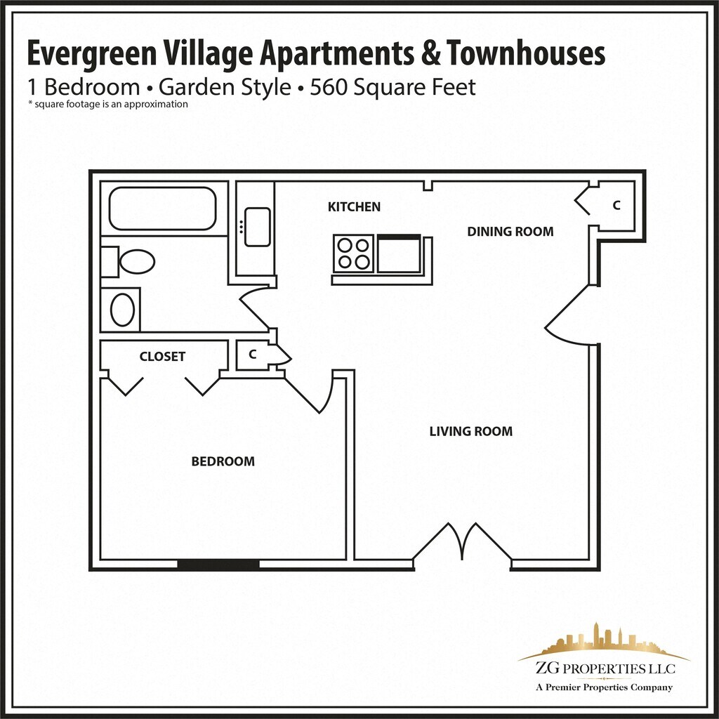 Evergreen Village Apartments & Townhouses offers 1 to 3 Bedroom apartments starting from $915 and having 560–1,050 sq ft. Here is the current pricing and availability: