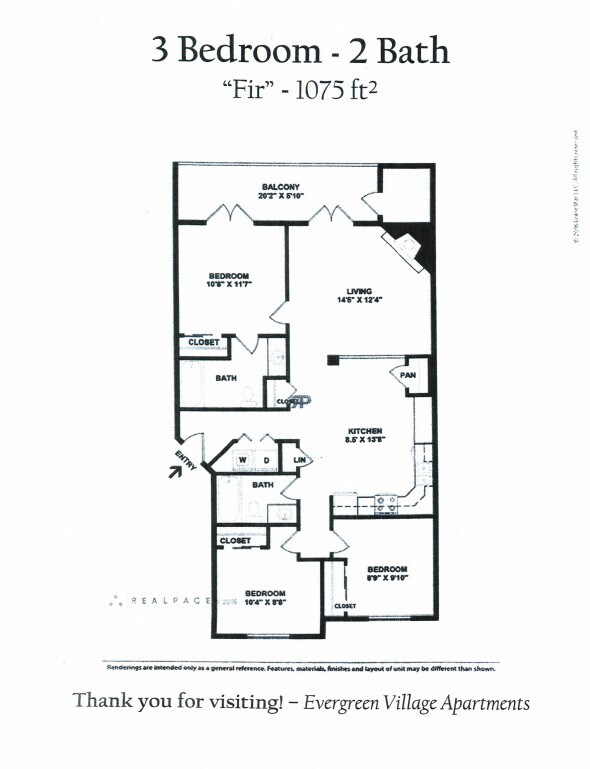 2 Bedroom to 3 Bedroom Apartments at Evergreen Village Apartments currently range from $1,525 to $1,950
