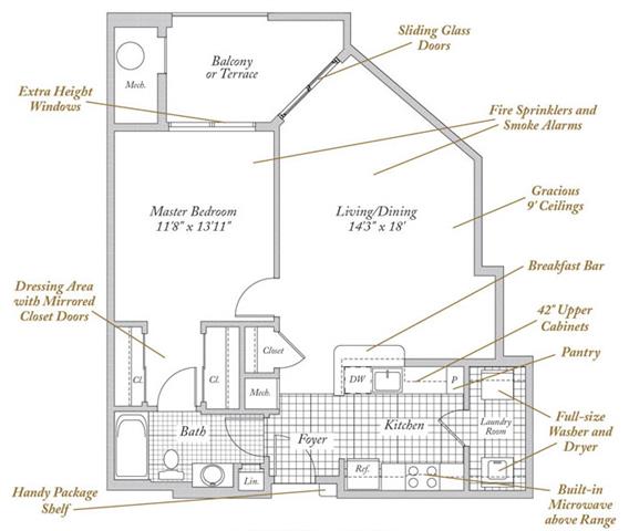 1 Bed, 1 Bath, 689 sq ftModel Gallery