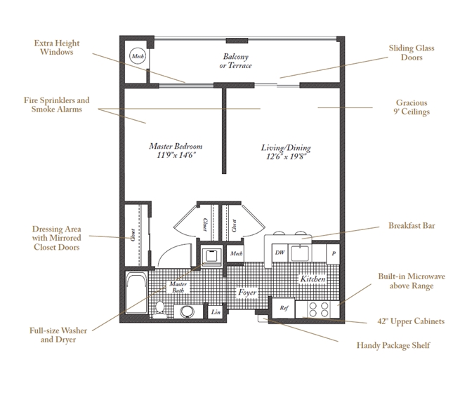 1 Bed, 1 Bath, 709 sq ftModel Gallery