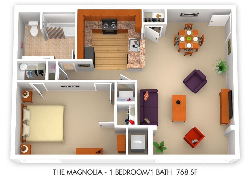 Apartment Model: The MagnoliaFrom $1,8791 Bedroom, 1 Bath, 768 sq ftAvailable April 30, 2026FloorplansPhotos3D Tours![]()
